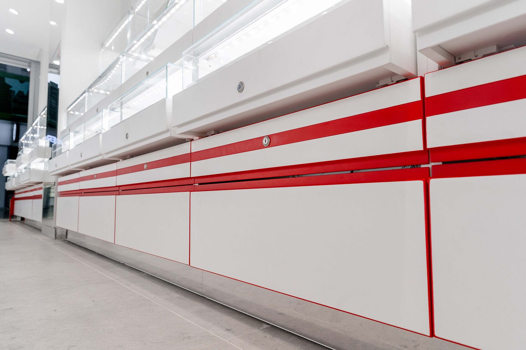 В рамках проекта были изготовлены и установлены витрины с LED-подсветкой, прилавки, кассовая зона и функциональные рабочие места. Свет, материалы и компоновка подобраны так, чтобы выгодно подчеркнуть ассортимент украшений и обеспечить удобство покупателям и персоналу.