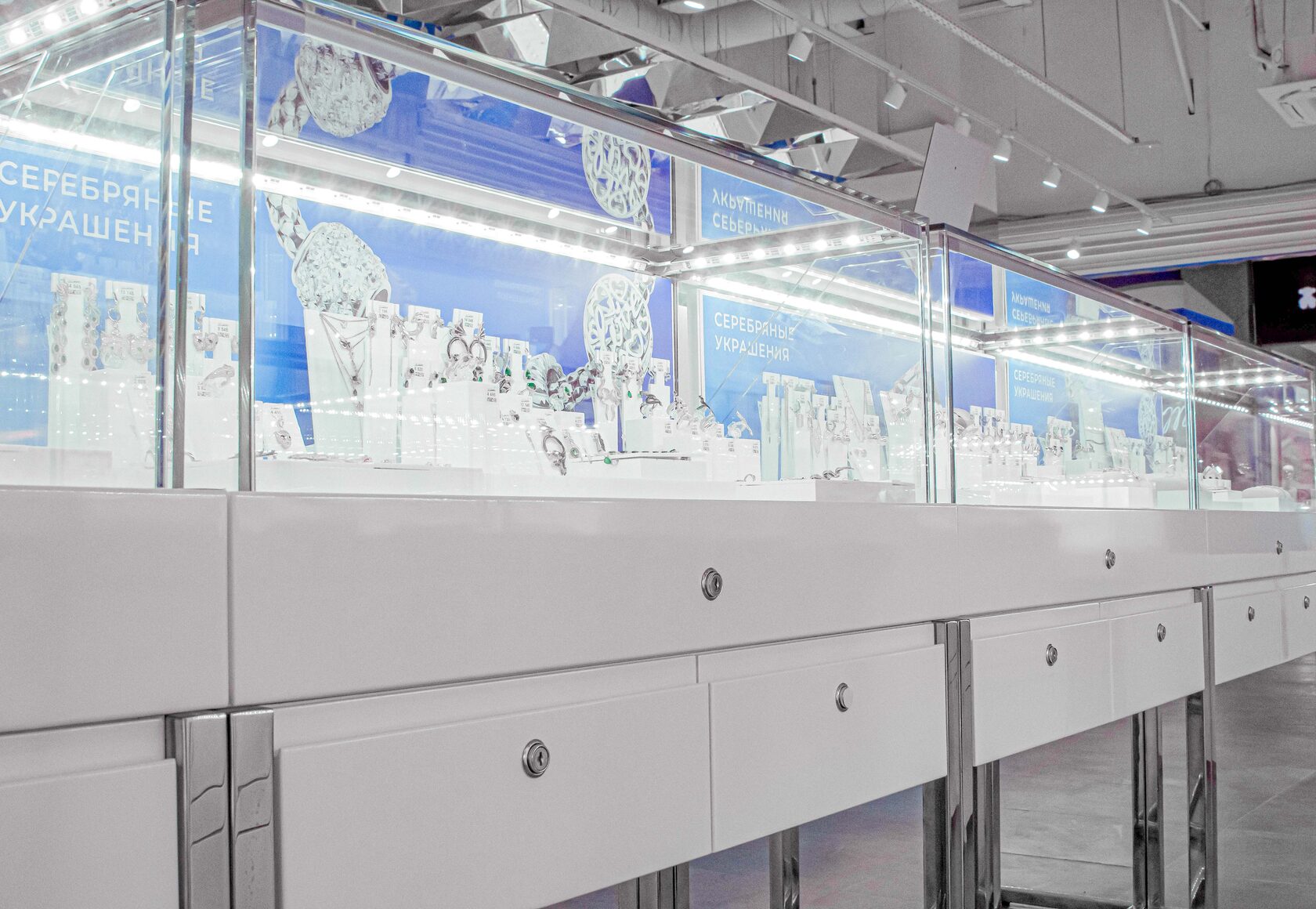- Изготовление: используем высококачественные материалы и современные технологии для создания витрин, стеллажей и прилавков.