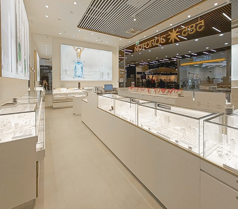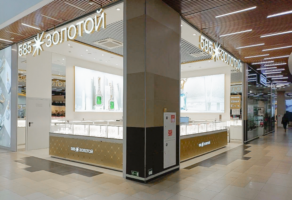 Салон 585 Золотой в ТРК «Титан Арена» стал современным пространством, где сочетаются эстетика и функциональность. Благодаря работе Интерьерных Решений, магазин подчёркивает ценность ювелирных украшений и дарит покупателям атмосферу доверия и комфорта.