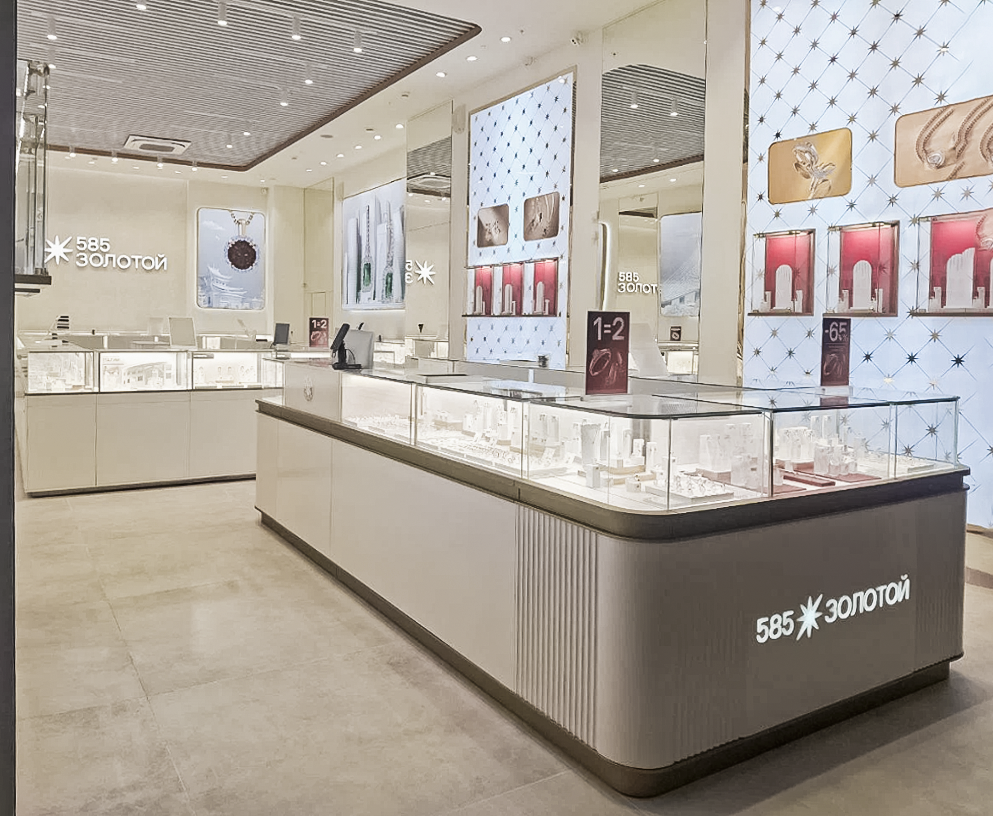 Новый салон 585 Золотой Премиум в ТЦ «Мега», г. Новая Адыгея — интерьерные решения и мебель от команды ir-b2b.ru